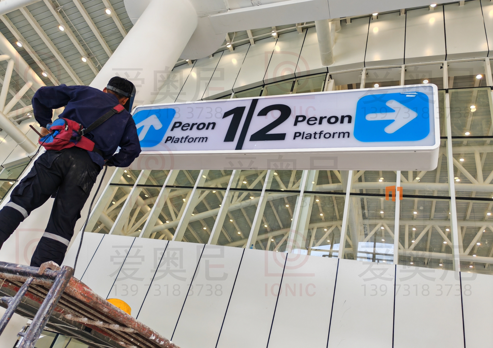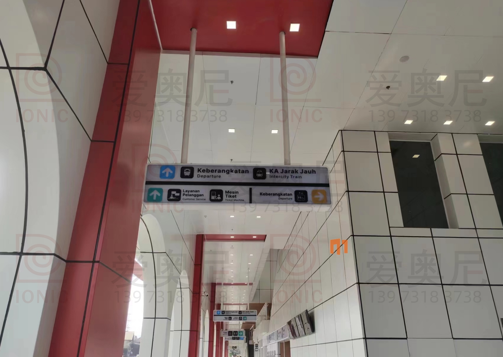 下圖是愛奧尼標(biāo)識(shí)公司為印尼雅萬高鐵帕達(dá)拉郎站制作和安裝指導(dǎo)服務(wù)的靜態(tài)標(biāo)識(shí)??蛻魧?duì)項(xiàng)目制作工藝非常滿意。湖南愛奧尼標(biāo)識(shí)工程有限公司是一家專業(yè)的鐵路標(biāo)識(shí),導(dǎo)向標(biāo)識(shí),高鐵站標(biāo)識(shí),站房標(biāo)識(shí),靜態(tài)標(biāo)識(shí)設(shè)計(jì)制作安裝服務(wù)公司,擁有15年標(biāo)識(shí)設(shè)計(jì)經(jīng)驗(yàn),100多名專業(yè)生產(chǎn)團(tuán)隊(duì),獲得ISO9001質(zhì)量管理體系認(rèn)證等數(shù)10項(xiàng)榮譽(yù)資質(zhì)證書,電話:400-0731-050,13973183738